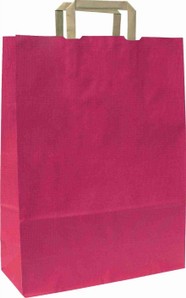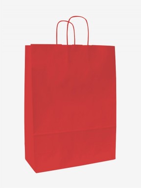 Červená taška Červený tisk na hnědém sulfátovém papíru 100g.Hnědé ploché papírové držadlo. Vhodné pro potisk sítotiskem. |