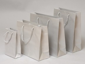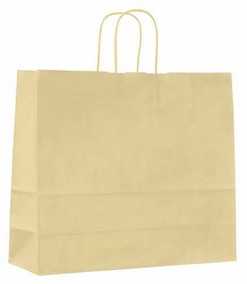 Béžová Béžový tisk na bílém kraftovém papíru 100g. Kroucené papírové držadlo v barvě tašky. |